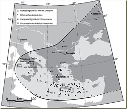 La plus grande éruption volcanique répertoriée au cours des derniers 100.000 ans dans l’hémisphère nord correspond à la super-éruption des Champs Phlégréens, proches de Naples, et datée d’il y a 39.400 ans ; Les cendres émises par l’éruption, au cours de laquelle près de 350 km³ de roches et laves furent éjectés, et distribués sur l’ensemble de l’est de la Méditerranée et la Russie centrale, sont également répertoriées dans les sédiments étudiés par forages en Mer Noire.