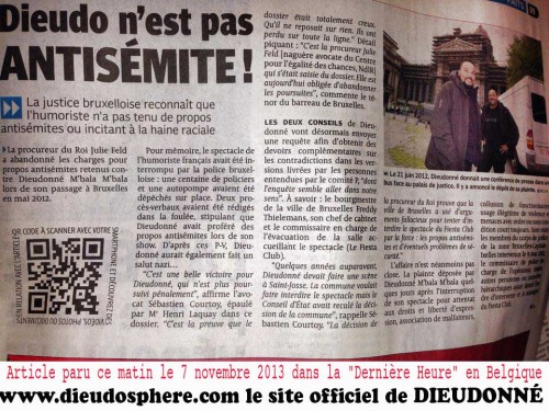 Il y a quelques heures, une information diffusée par un paparazzi français informait l'opinion que le théâtre dans lequel se produit Dieudonné appartiendrait à des juifs qui auraient décidé de tout faire pour rompre le bail qui les lie à l'humoriste. Ce paparazzi n'a pas hésité à proférer des insultes racistes (singe, jungle et consorts) sur son blog à l'endroit de Dieudonné, arguant qu'il utilisait les mêmes procédés que l'humoriste. Malgré cette pluie de propos racistes, donc condamnables, le paparazzi a pu faire, sans la moindre inquiétude le tour des radios et télévisions françaises ce matin. Cette affaire qui prend des tournures inattendues n'est donc visiblement pas terminée, puisque les avocats annoncent dans leur missive, leur volonté de porter plainte pour atteinte à la vie privée et en diffamation.
