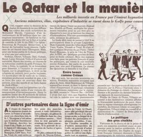 “Ces investissements par les dirigeants du Qatar sont faits pour acheter, acheter !, les dirigeants français. Et ça commence avec Nicolas Sarkozy qu’ils ont acheté de toutes pièces.” [Ziad Takieddine, ancien proche de Nicolas Sarkoy, France 24, 12/04/2013]